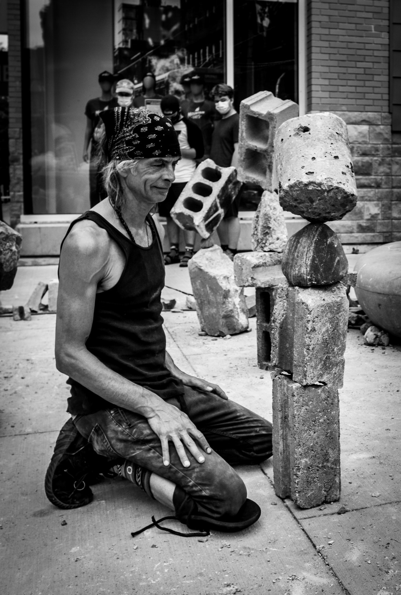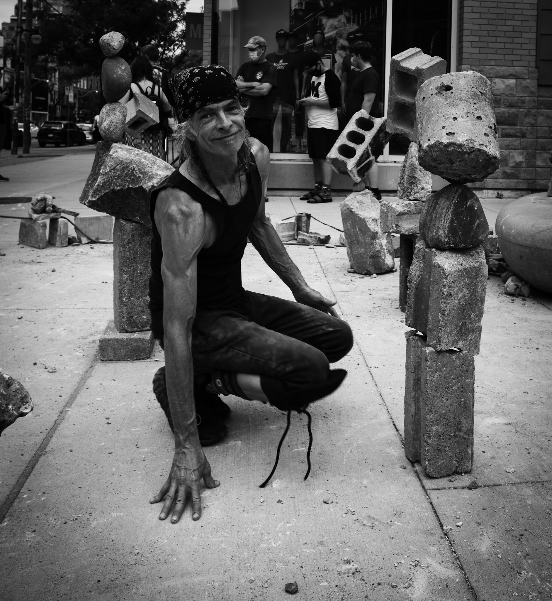 They were talking, they were chatting, they were closer before I touched my camera. As soon as it was clear I was going to take a picture, things changed. The cop hid his face, the homeless hid his'. I am not complaining, just pondering.